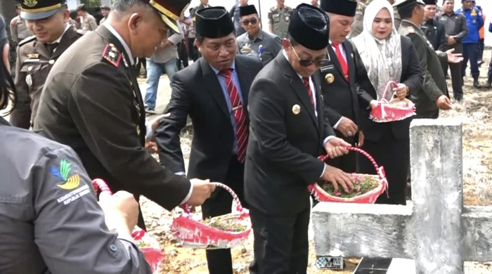 “Saat ini kita melakukan ziarah ke makam pahlawan ini, kita meletakkan karangan bunga serta menaburkan bunga sebagai bentuk hormat dan mengenang jasa yang telah mereka berikan kepada bangsa ini,” ujar Bupati Heriyus.