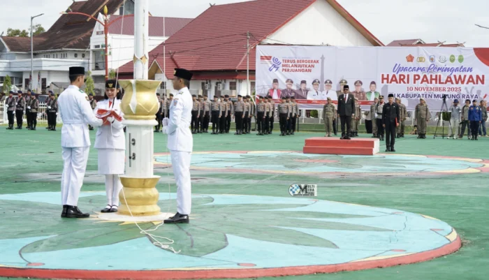 Murung Raya | EnterKal – Pemerintah Kabupaten (Pemkab) Murung Raya menggelar Upacara Peringatan Hari Pahlawan Tahun 2025 di halaman Kantor Bupati Mura, Senin (10/11/2025). Bupati Murung Raya, Heriyus, bertindak sebagai Inspektur Upacara.