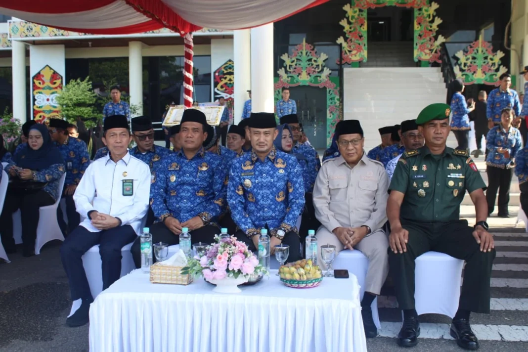 Palangka Raya | EnterKal – Wali Kota Palangka Raya, Fairid Naparin, menyampaikan amanat pada peringatan Hari Guru Nasional, HUT ke-80 PGRI, serta HUT ke-54 KORPRI yang digelar di Halaman Kantor Wali Kota Palangka Raya, Senin (01/12/2025) pagi.