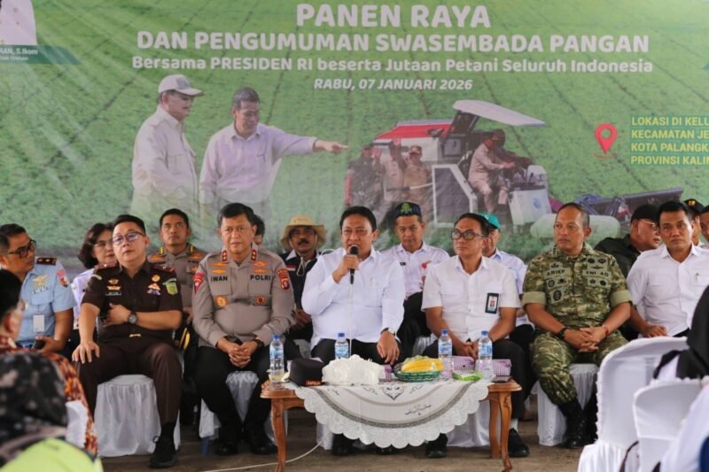 Palangka Raya | EnterKal – Pemerintah menyatakan Indonesia telah mencapai swasembada pangan tahun 2025. Pengumuman tersebut disampaikan Presiden Republik Indonesia, Prabowo Subianto, dalam kegiatan Panen Raya dan Pengumuman Swasembada Pangan yang digelar Kementerian Pertanian, Rabu (7/1/2026).
