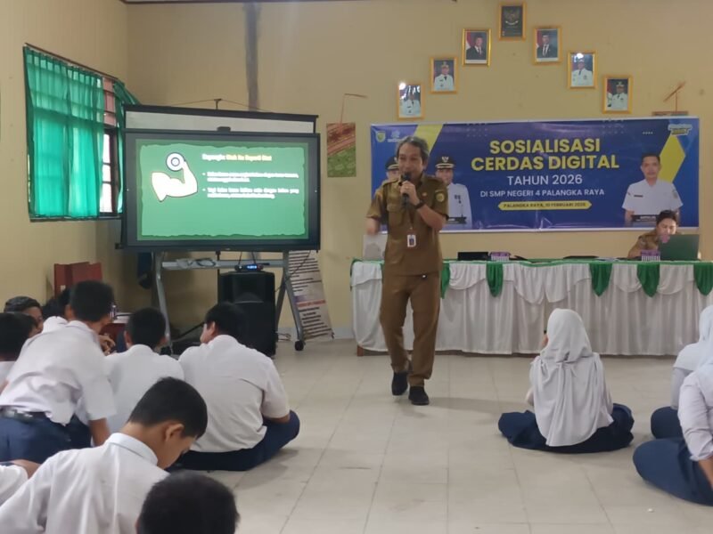 Palangka Raya | EnterKal — Dinas Komunikasi, Informatika, Statistik, dan Persandian (Diskominfo) Kota Palangka Raya terus mengintensifkan edukasi literasi digital di kalangan generasi muda. Kali ini, para pelajar SMP Negeri 4 Palangka Rayamenerima Sosialisasi Cerdas Digital, Selasa (10/2/2026).