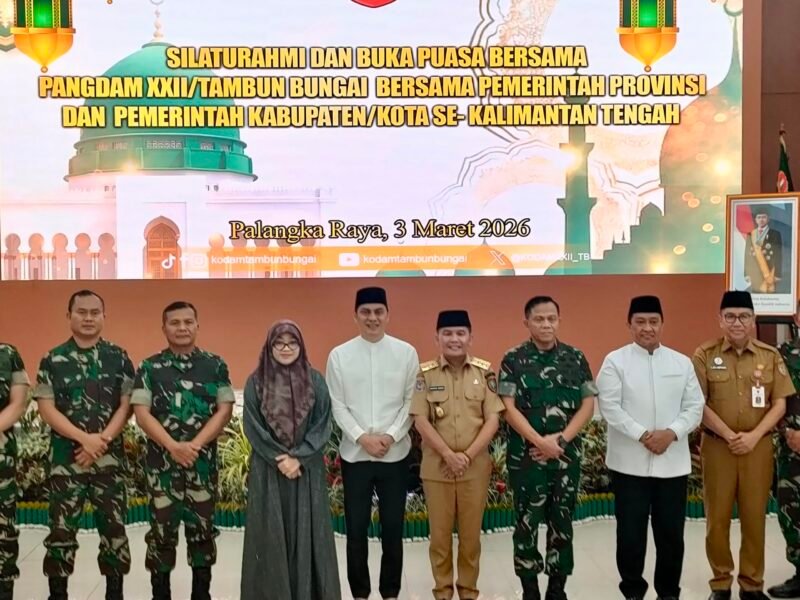 PALANGKA RAYA | EnterKal — Komando Daerah Militer XXII/Tambun Bungai memanfaatkan momentum Ramadan untuk mempererat kerja sama dengan pemerintah daerah se-Provinsi Kalimantan Tengah melalui kegiatan silaturahmi dan buka puasa bersama di Balai Berkah Makodam XXII/TB, Selasa (3/3/2026).